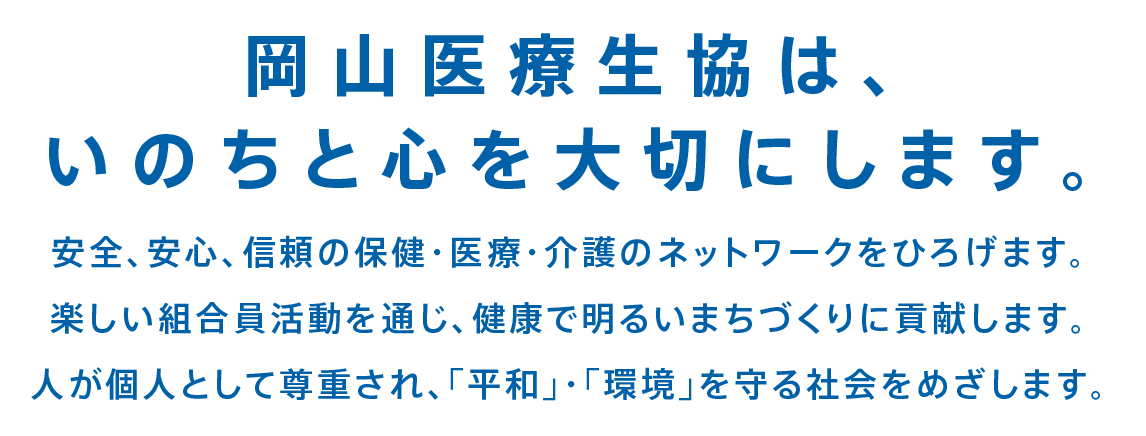 岡山医療生活協同組合では、地域に根ざした「安全」「安心」「信頼」の医療をともにささえていく各種専門スタッフを募集しています。